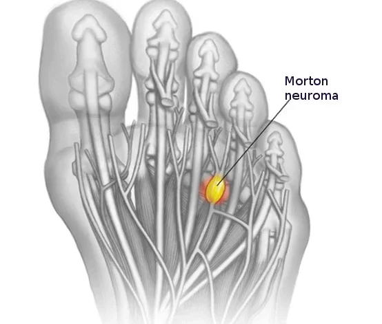 Morton's neuroma is a painful condition affecting the nerves in your foot, most commonly between the third and fourth toes. It occurs when the tissue surrounding one of the nerves leading to your toes becomes thickened, often due to irritation, compression, or injury. This can result in a feeling of burning pain, numbness, or even the sensation of having a pebble in your shoe.